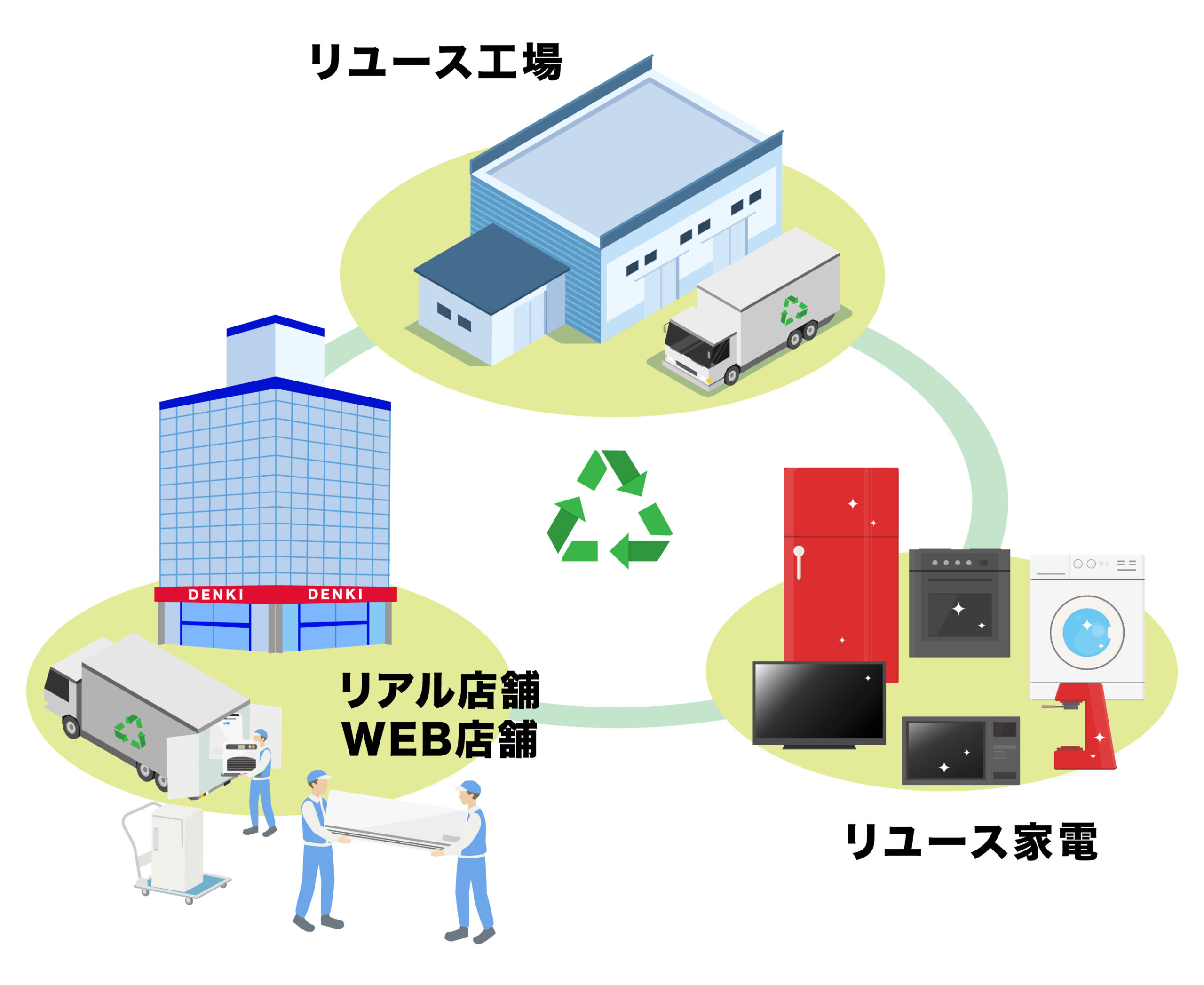 暮らしに必要な家電を、もっと身近に、もっと安心して、リユースを通じて人にも環境にもやさしい暮らしをお届けします。